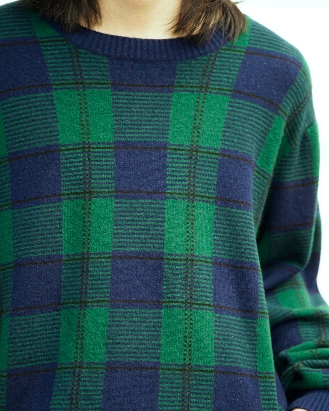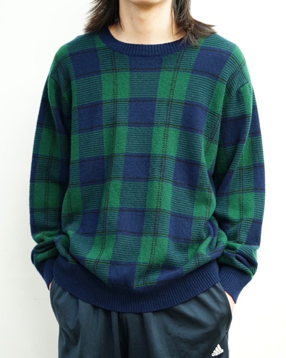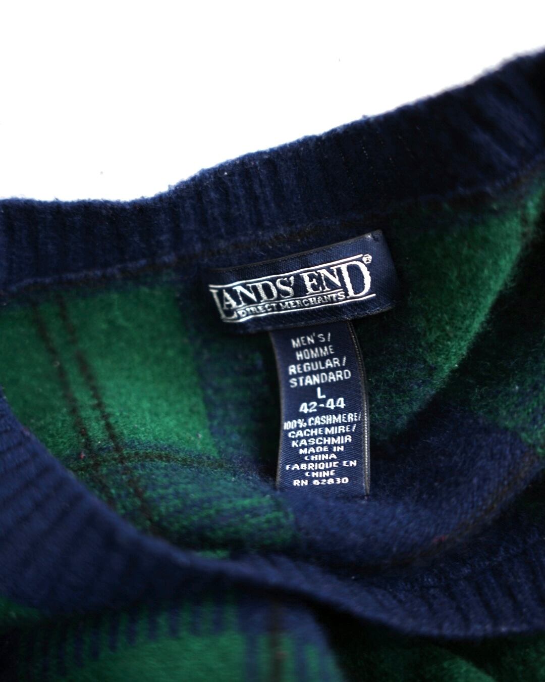 LANDS'END cashmere crewneck plaid sweater